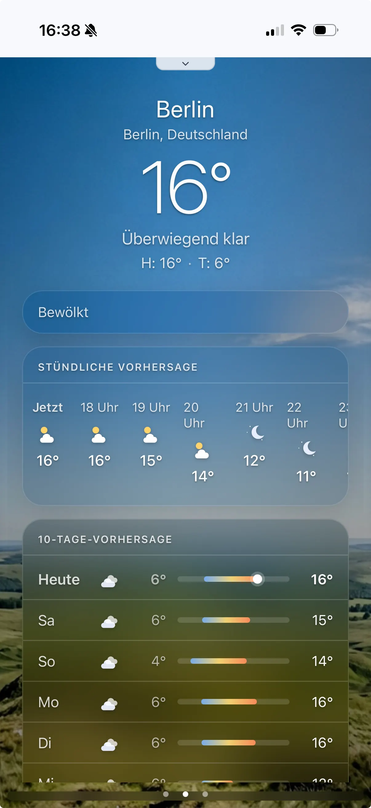 iOS-Weather-style forecast tile for one or more locations. A swipeable glass card over a full-bleed photographic background adapts to the tile size Haven reports - narrow tiles show a single location with dots, wider tiles show 2-4 at once. Uses the keyless Open-Meteo APIs so no secrets ever leave the sandbox. Great reference for launch parameters, viewport events, and responsive embedding.